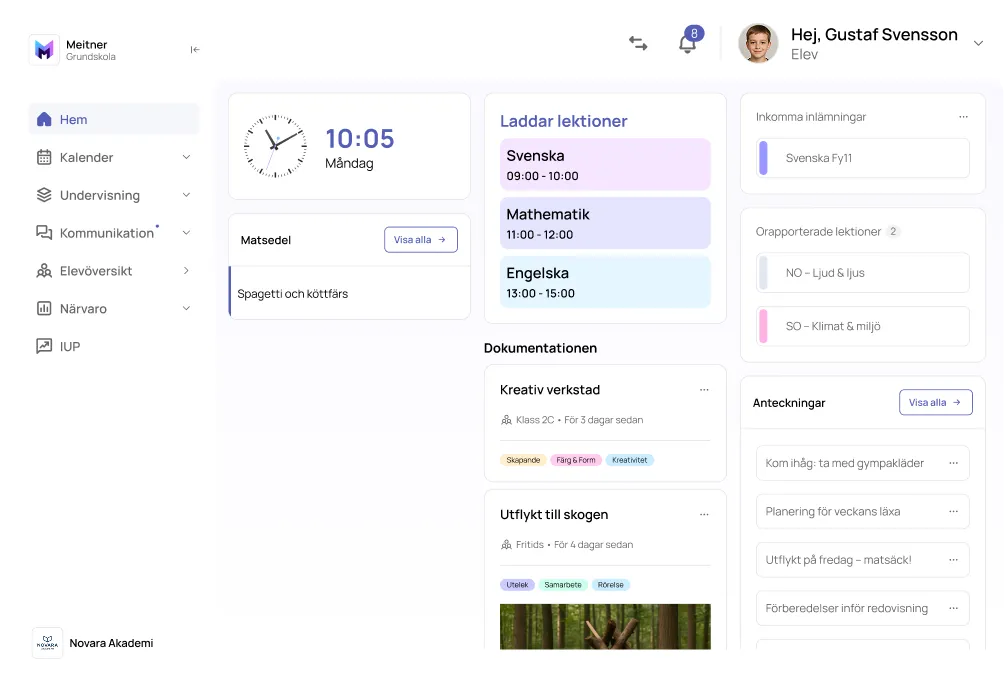 Plattformen är dynamiskt anpassad för ert gymnasium, precis som för de andra skolformerna. Meitner samlar allt skolrelaterat i en och samma plattform.